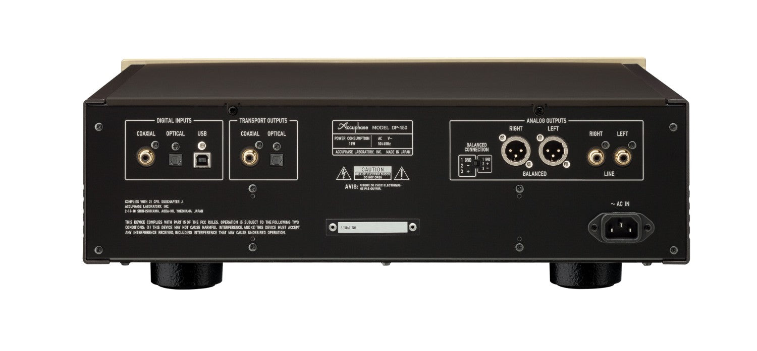 Accuphase has spent 35 years developing CD players in pursuit of the best in disc playback. The DP-450 CD player combines a number of innovative technologies, including a CD drive mechanism with a strong integrated structure, high-quality elastic dampers that protect the lensactuator from vssibration, and MDS+ type D/A converters with four parallel circuits. The DP-450 extracts the full potential of any CD to deliver a listening experience that stays with you.